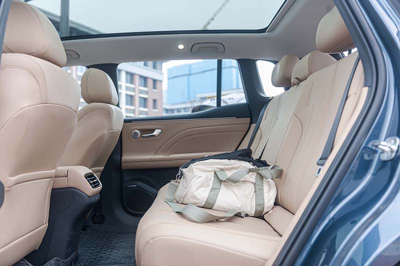 进入座舱,家庭舒适感的差距进一步拉开。埃安i60全舱高频触摸区均采用软包材质,搭配近4米长的32色氛围灯,温馨感远超银河E5的硬塑料占比偏高与零跑C10的局部软包设计。后排137°可调沙发式躺椅搭配900mm腿部余量,让身高175cm的乘客也能轻松舒展,远超银河E5的750mm与零跑C10的800mm腿部空间;75°后排开门角度、副驾小桌板、电动尾门等配置,精准解决老人上下车、孩子写作业、抱娃取物等家庭用车场景痛点。更值得一提的是其母婴级儿童专区,加固型ISOFIX接口、一键控制儿童锁与甲醛含量<0.02mg/m³的环保材质,让家长倍感安心,这也是银河E5与零跑C10所欠缺的核心优势。