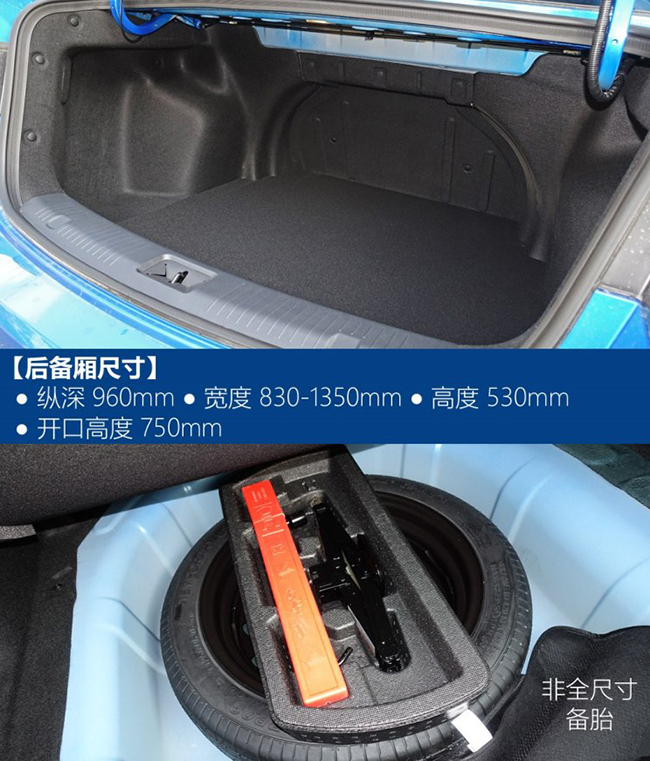后备厢的容积为410升,在这四款车型中是最小的,不过作为一款代步车,满足日常使用还是没有问题的。