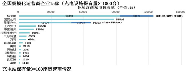 充电运营商方面,截止到2019年2月,34.8万台公共充电基础设施中,特来电运营12.4万台、国网运营8.8万台、星星充电运营6.6万台、上汽安悦运营1.4万台、中国普天运营1.4万台,这五家运营商占总量的88.5%,其余的运营商占总量的11.5%。