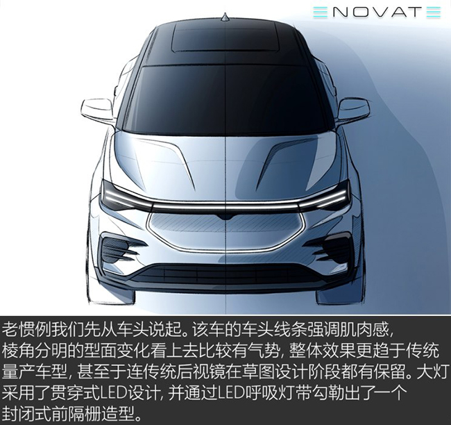 在这个设计趋同化的时代当中,很多初创新能源车企都喜欢用激进的设计实现标新立异,虽然这样的做法看上去似乎很酷,但从造车的角度来说,将这样的“科幻车型”实现量产近乎是不可能的事。所以在设计之初,ENOVATE的首款车型并未采用那种夸张的设计手法,而是更像一台我们常见的量产车一样,通过线条与形面的变化,设计出一台可以量产的SUV。(注:由于本次内部鉴赏会的概念车并非最终版本,并不允许拍照,故我们只能从厂方提供的一些效果图和概念图进行设计解析,望谅解。)