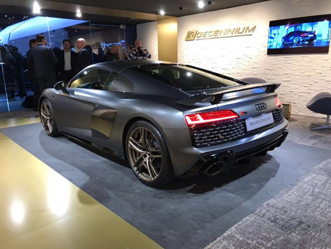 奥迪为了纪念R8 V10车型推出10周年,发布了R8 V10 Decennium(十年)特别版车型。基于新款奥迪R8打造,其采用了专属的戴通纳灰+哑光古铜色外观搭配,动力上仍搭载的是5.2升V10自然吸气发动机,最大功率达到了620马力。据悉,新车将在2019年春季限量发售222辆,起售价为22.2万欧元(约合人民币169.39万元)。