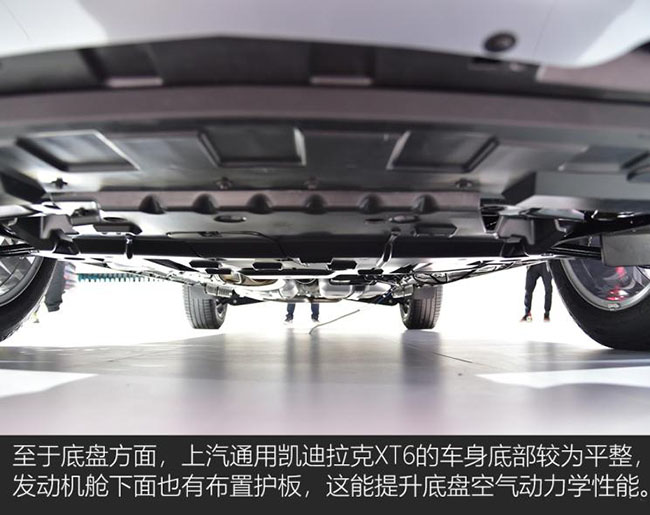 上汽通用凯迪拉克XT6的底盘相比海外版XT6,除了在发动机舱下方多了一块护板外,在悬架系统的机械结构上并无明显的不同,并且XT6运动版标配一套与XT5相同的四驱系统,这套四驱系统可动态分配左/右后轮的动力配比,从而增强车辆的操控性能和通过性能。