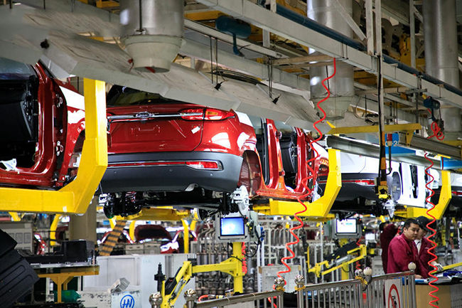 今年,国家提出大力发展工业互联网、加快实体经济转型升级的指导意见。众多工业巨头开始逐渐重视工业互联网在实际生产中的应用,实现现代智能化的生产。而江淮则在焊接车间引进了170台Fanuc(发那科)机器人,从而实现了高柔性、高控制、高速自动化的焊接工艺,生产节拍可以达到60台/小时。(配图为总装线)