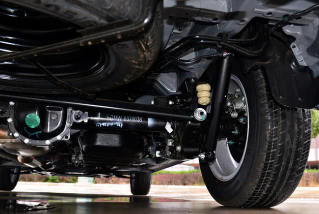 底盘:底盘方面,宏光PLUS低配车型搭载了前麦弗逊独立悬架和钢板弹簧式非独立后悬架,单边5片钢板设计,承载能力相当出色,而高配车型则匹配螺旋弹簧五连杆非独立悬架,保证载重能力的同时,整车乘坐舒适性表现会更佳。