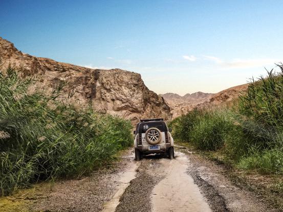 敦煌试驾路线中,岩石遍布的丘陵、坑洼不平的戈壁,以及黄沙漫天的沙漠都是对全新路虎卫士110通过性的极大挑战。它拥有的全地形铂金几何车身,具备28度通过角、40度离去角、38度接近角的硬核三角指标,即使道路高低不平,全新路虎卫士110也能提供更优质的路况通过性能,轻松翻越挑战性极高的陡坡路段。在经过岩石密布的狭窄路面时,全新路虎卫士110在电子空气悬架的帮助下,自由调节底盘高度,最大可达291毫米的离地间隙,使车辆尽情抵达敦煌每一处胜地。